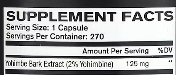 То есть: 125 мг × 0,02 = 2,5 мг чистого йохимбина на капсулу.