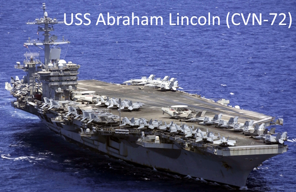 В состав группы USS Abraham Lincoln входили эсминцы USS Spruance, USS Michael Murphy и USS Frank E. Petersen Jr., каждый из которых несет вертикальные пусковые установки с ракетами «Стандарт» для ПВО и крылатыми ракетами Tomahawk для ударов по наземным целям.