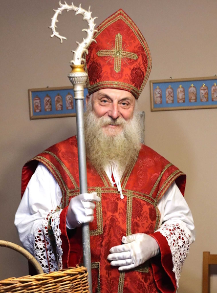 Синтерклаас, или Святой Николай, является прототипом многих современных рождественских персонажей, но в Нидерландах он сохранил свой классический епископский облик. Он предстает перед публикой как статный старик в высокой красной митре и богатой церковной ризе, держащий в руке золотой посох с завитком. Согласно голландской традиции, Синтерклаас прибывает не с Севера, а из теплой Испании на пароходе, что торжественно отмечается в городах по всей стране еще в середине ноября.