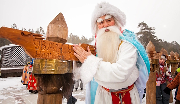 Монгольский Дед Мороз, которого зовут Увлин Увгун, предстает в образе величественного пастуха-скотовода, что напрямую связано с кочевыми традициями народа. Он одет в традиционный монгольский халат — дэли, отороченный густым мехом, лисью шапку и высокие сапоги. В руках он держит длинный кнут, который в степи является символом власти и управления стадами, а на поясе у него висит сумка с кремнем и огнивом.