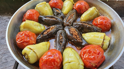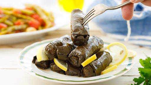 Этот деликатес представляет собой овощи, такие как виноградные листья, кабачки или баклажаны, фаршированные мясной или рисовой начинкой.