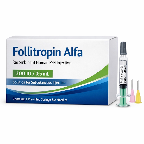 Follitropin, with follitropin alfa or beta as the active ingredient, is recombinant human FSH made through genetic engineering. Unlike older urine-derived preparations, it does not contain LH contamination and has strictly standardized activity. In clinical practice it is used to treat hypogonadotropic hypogonadism, where the body does not produce its own gonadotropins, and also to induce spermatogenesis in men.