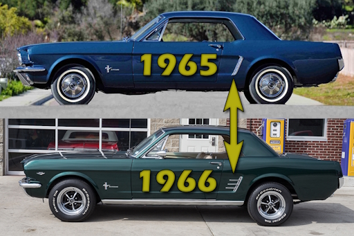Внешний вид изменился за счет удлиненных вентиляционных решеток на капоте и появления эмблемы “Mustang” на решетке радиатора. Варианты колесных колпаков и спортивных дисков расширились. В 1966 году появилась версия GT с дополнительными противотуманными фарами и полосами на боках.