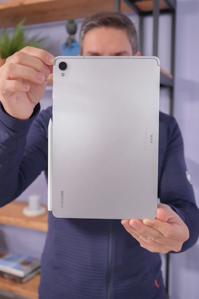 С точки зрения эргономики, Samsung сделал ставку на горизонтальный режим использования — именно так расположена фронтальная камера, и так же симметрично выстроены четыре стереодинамика. Планшет явно создан для замены ноутбука в большинстве сценариев, и его дизайн этот тезис полностью подтверждает.