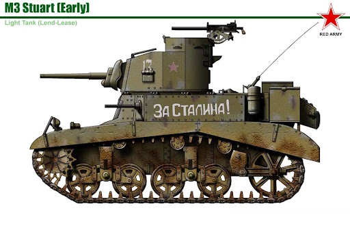 Танк M3 “Стюарт” – Легкий танк, поступило около 1232 единиц. Отличался высокой скоростью и надежностью, но слабой броней и вооружением. Использовался в основном для разведки.