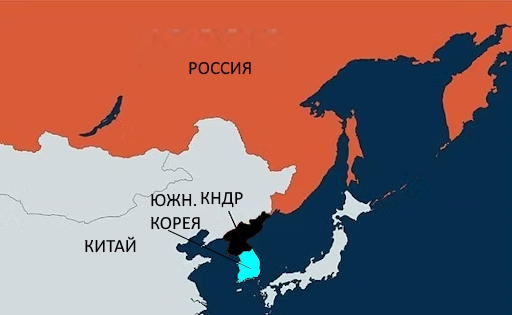 Северная Корея (показано черным) граничит с Россией на 17 км. В 2025 году отношения укрепляются, с военным сотрудничеством. Исторически страны были союзниками в холодной войне.