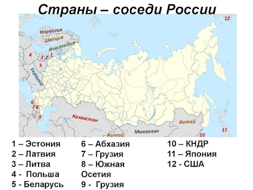 Каждая сухопутная граница России — это уникальная история взаимодействия. Некоторые соседи, такие как Китай и Казахстан, укрепляют экономические связи, в то время как другие, например Украина и страны Балтии, находятся в состоянии политической конфронтации. Культурная интеграция, миграция и территориальные вопросы добавляют сложности в эти отношения. Понимание этих аспектов помогает осознать место России в современном мире и динамику ее взаимодействия с соседями.